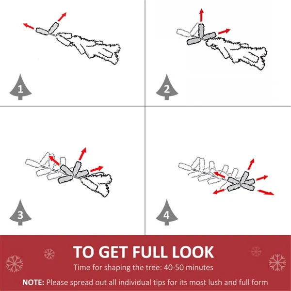 - In order to get a full appearance, please spread out all individual tips to get the best possible look from the tree, suggest you take 35-60 minutes to shape the tree.