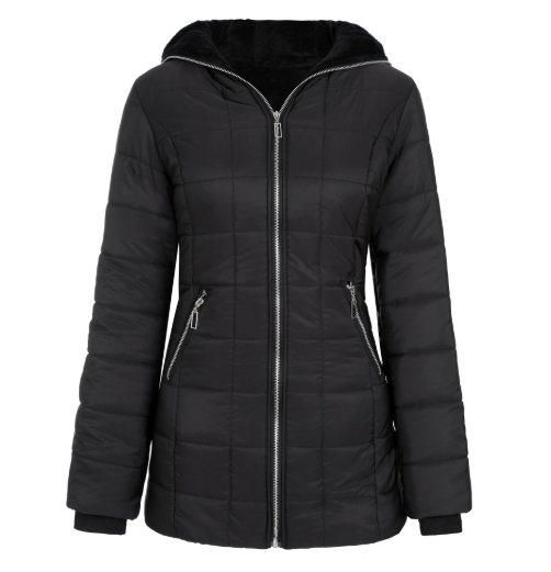 Ladies' Hooded Long-sleeved Warm Cotton-padded Jacket With Fleece