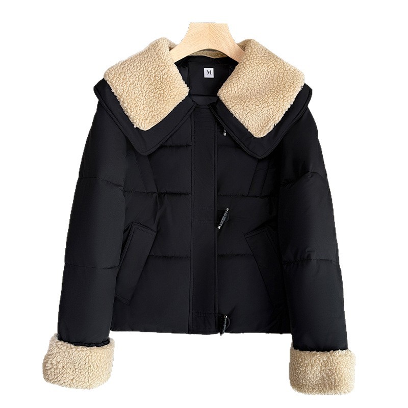 Patchwork Anti-lamb Wool Lapel Short Cotton-padded Coat